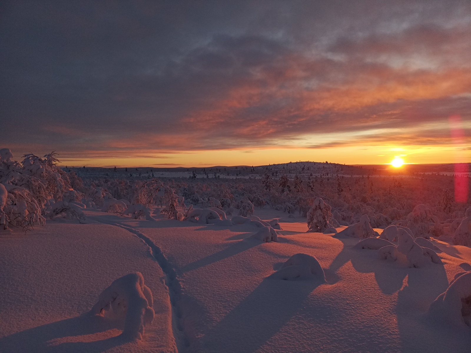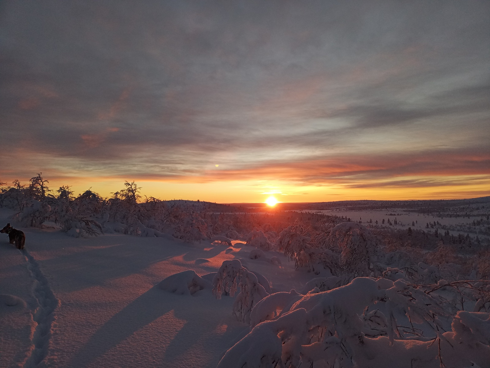The last time I saw the sun around 5 weeks ago because we had a pretty warm and cloudy December. In that time I only saw its ionized particles in the atmosphere as aurora borealis, sometimes for hours.